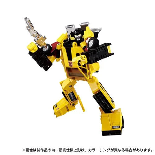 He's back! Sunstreaker returns to Transformers Missing Link with a 21st century refit. The classic 1980s toy design has been updated, keeping die-cast metal parts but adding lots of new articulation and a Dianaut driver that looks a little like Spike! Set includes Sunstreaker, a blaster, fists, stickers, Dianaut pilot, and additional accessories. For ages 15 and up.